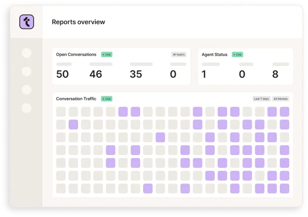 Real-time metrics: take action on what’s happening at the moment. Find out when there is a new inquiry and the number of agents available to solve it.